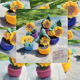 This particular post is just about the square pot. The mini sunflower and the leaf are in the earlier post. They are all made with cotton yarn. These would make a lovely gift and it is easy to do.